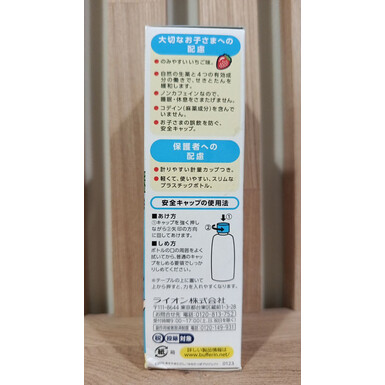 Японский детский сироп от кашля с приятным клубничным вкусом. Содержит декстрометорфан, метилэфедрин, дифенгидрамин и растительные экстракты для быстрого облегчения кашля и отхождения мокроты. Без кодеина, без кофеина. Удобный мерный стаканчик и защитный